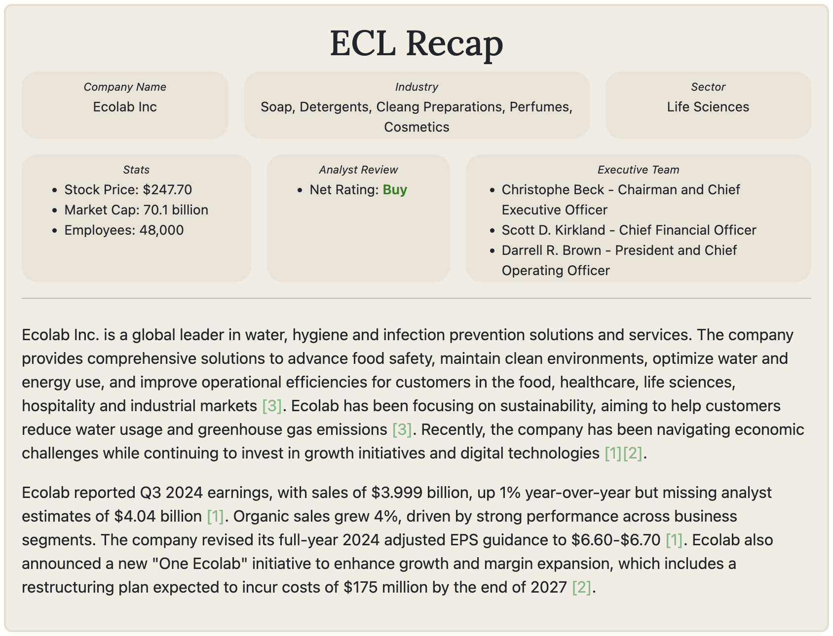 We do the heavy lifting. Recent news and SEC filings are meticulously curated. We are constantly adding more sources.